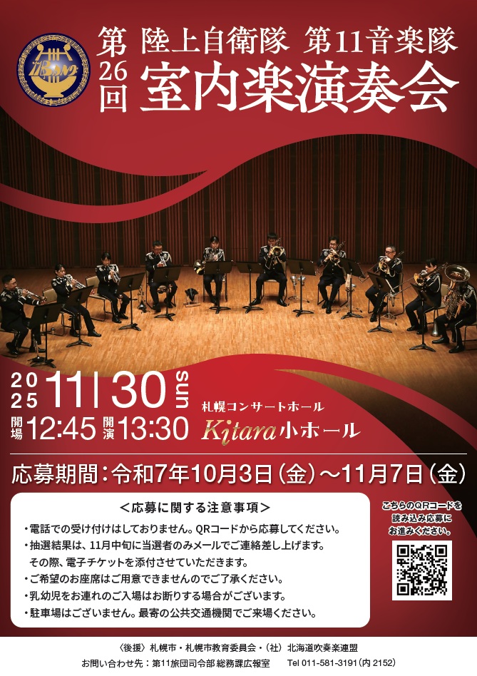 第11音楽隊第26回室内楽演奏会(締切11月7日)