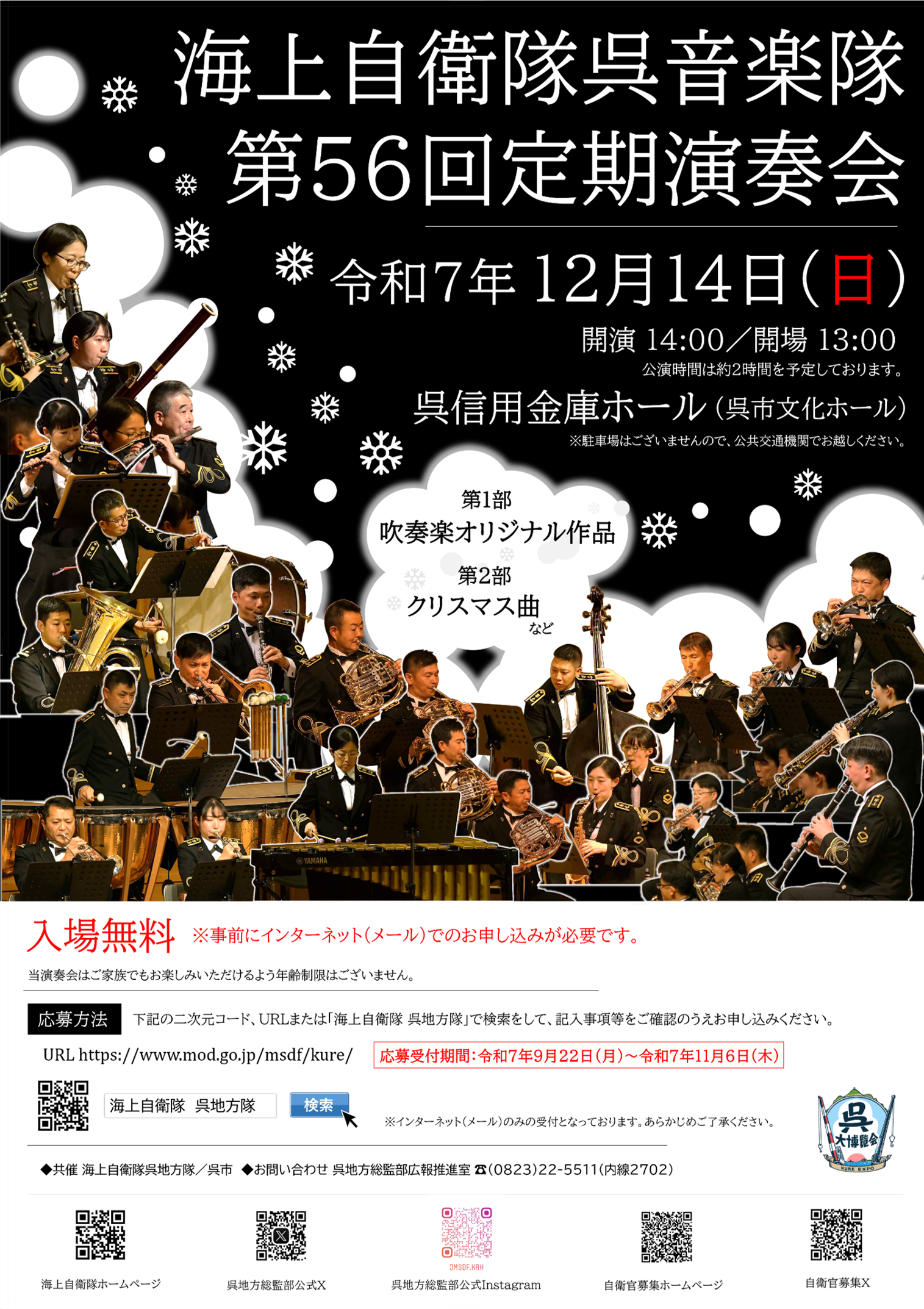 呉音楽隊第56回定期演奏会(要申込11月6日(木)締切)