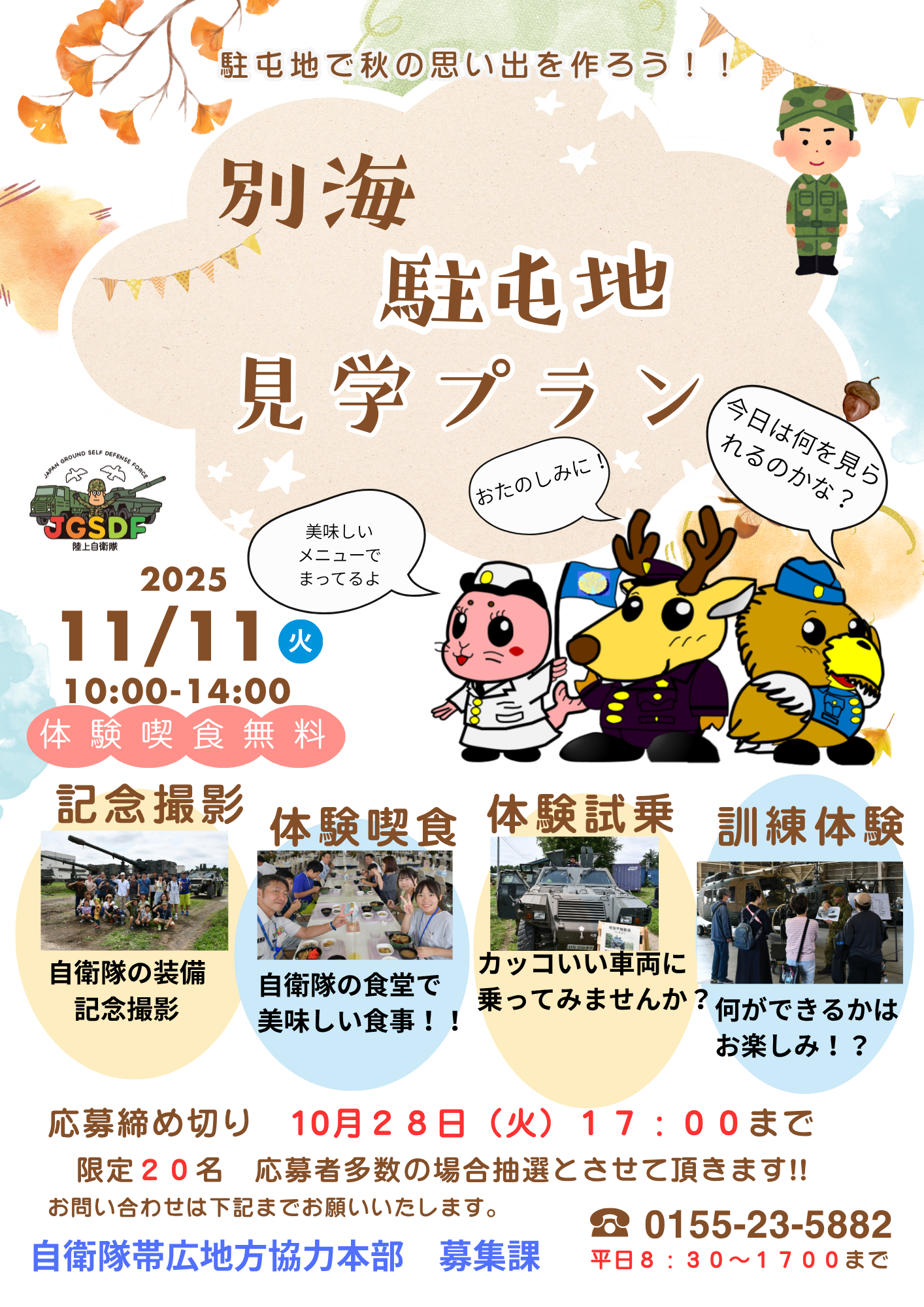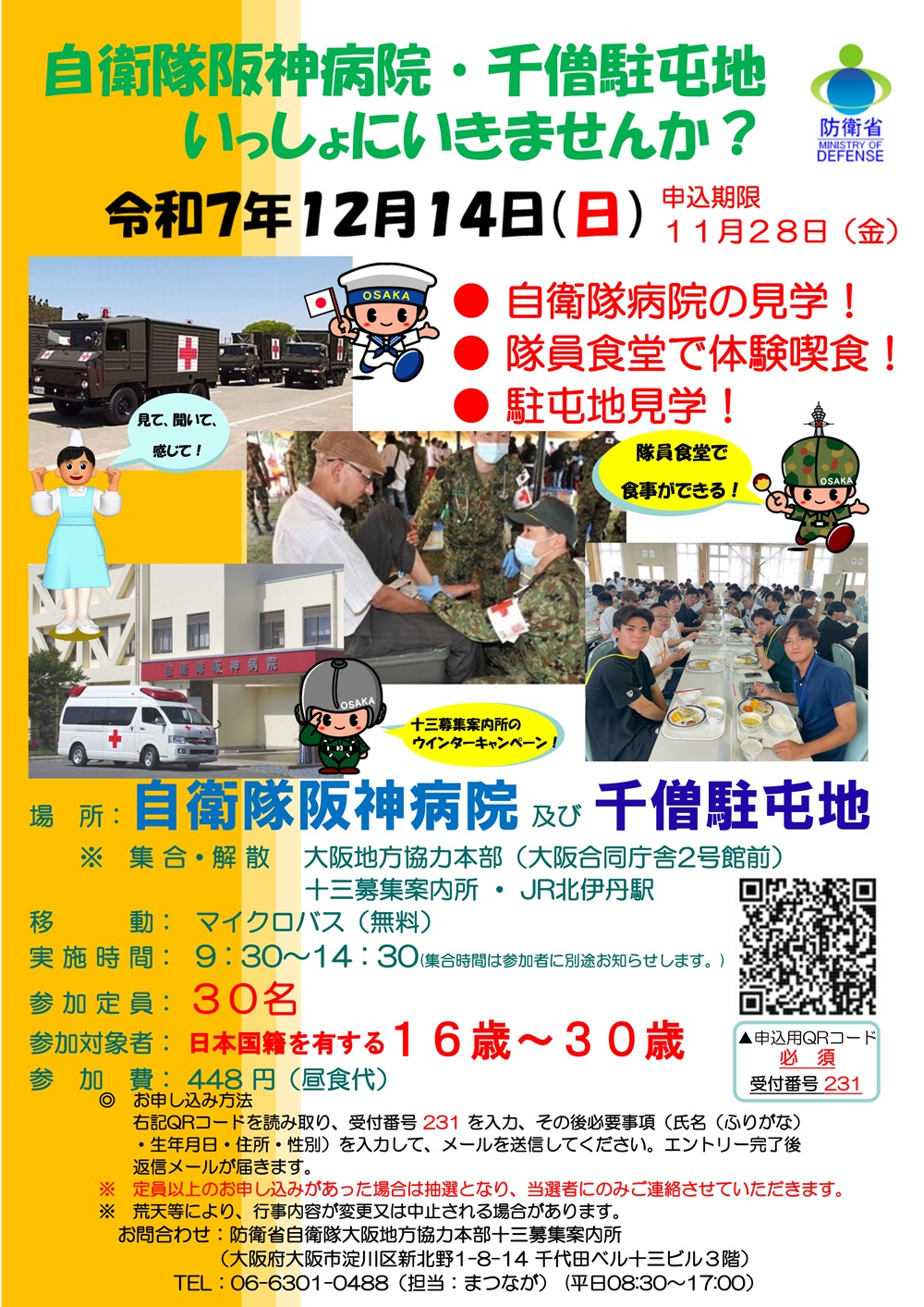 自衛隊阪神病院・千僧駐屯地いっしょにいきませんか?(締切11月28日)