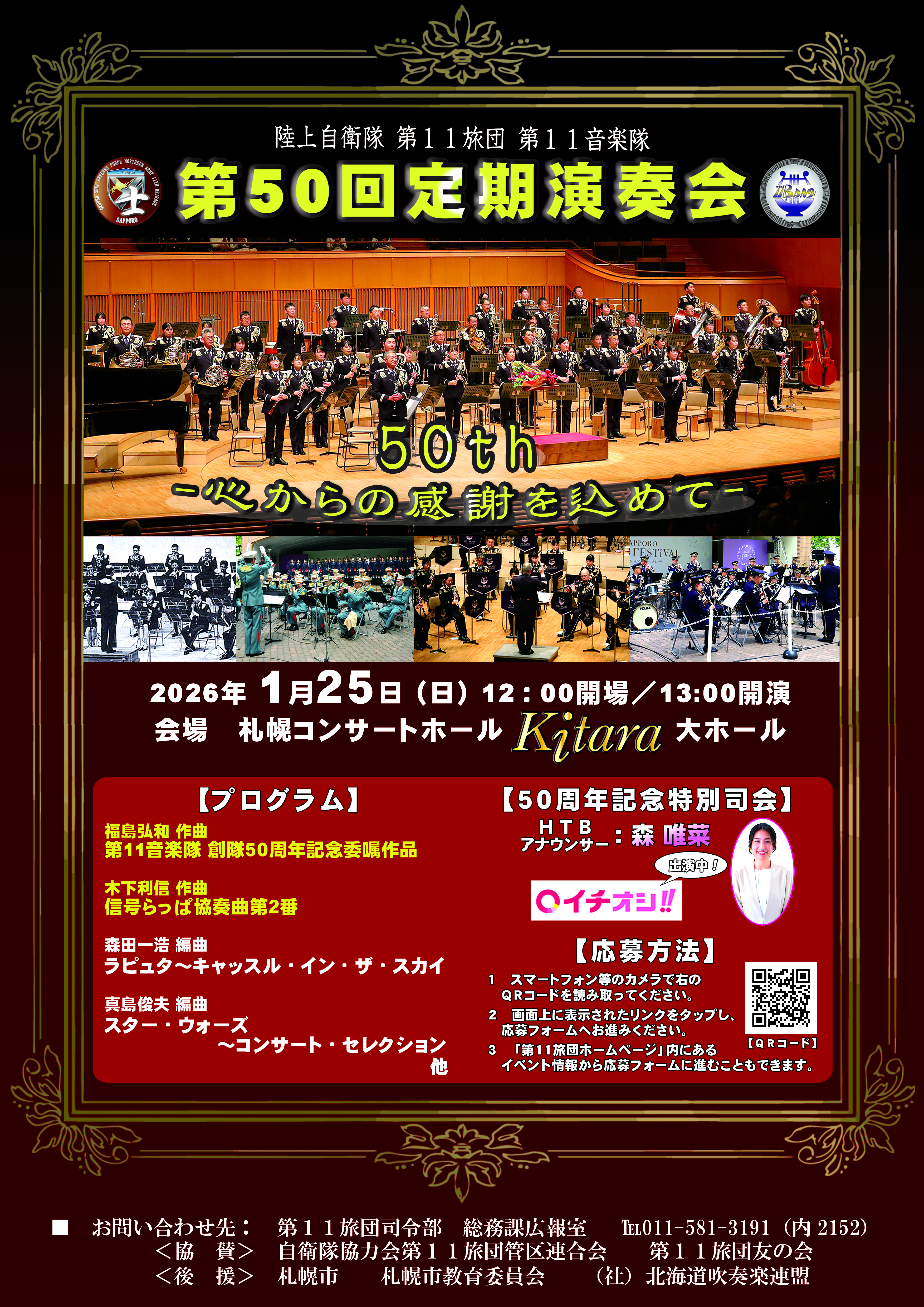 第11音楽隊第50回定期演奏会(1月5日(月締切)