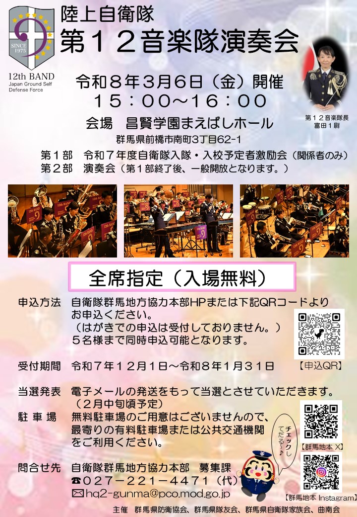 東北方面音楽隊演奏会2026in秋田(1月5日(月)締切)