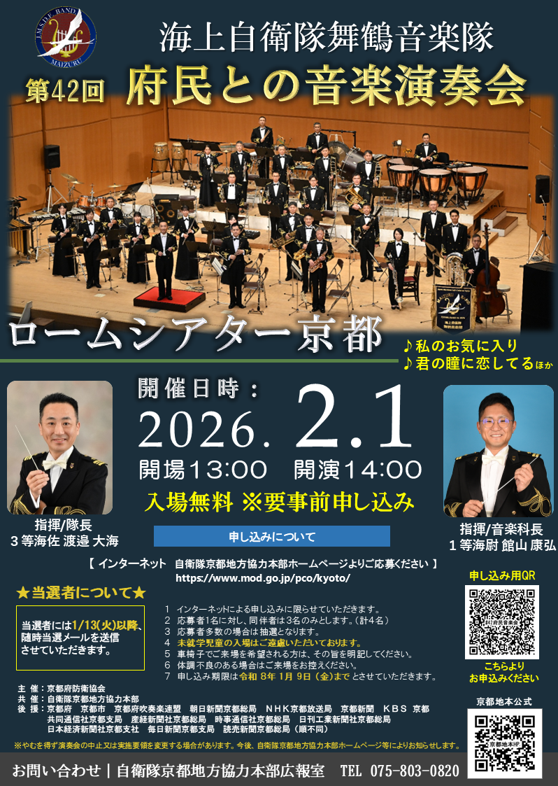 舞鶴音楽隊第42回府民との音楽演奏会(1月9日(金)締切