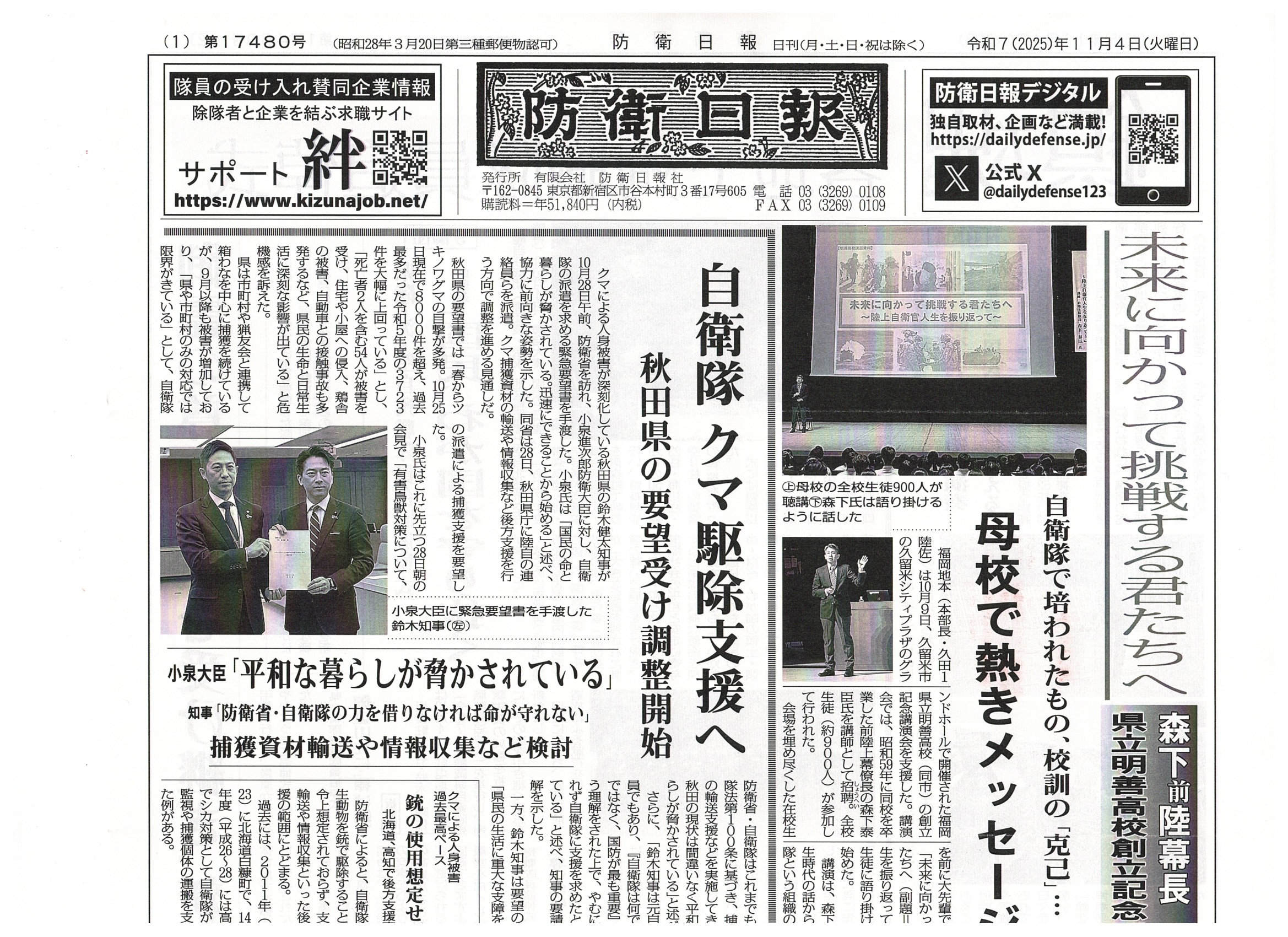 ※当サイトは「日刊防衛日報」紙面を通じ、隊員及び関係者方々へPRを続けております。